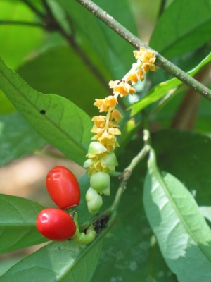 Solena amplexicaulis là một loại cây leo lâu năm, có rễ củ dày. Thân cây phân nhánh không có lông, có tua cuốn mảnh. Lá mọc kiểu xen kẽ, cuống lá mảnh dài 1 cm (0,4 in). Phiến lá có nhiều lông, hình oval hoặc thuôn dài, phần gốc lá hình trái tim và ngọn lá nhọn, dài 12 cm (5 in) và rộng 5 cm (2 in). Mép lá có khía cùn, mặt trên và dưới phiến lá có lông hoặc nhẵn.