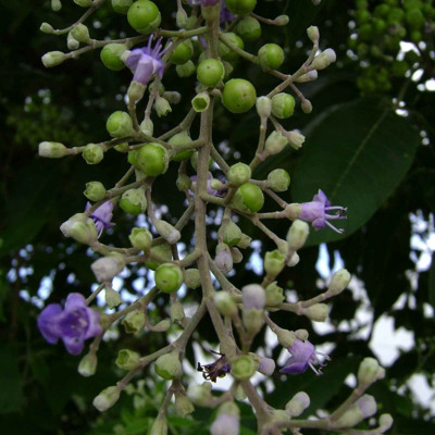 Cây gỗ nhỡ, cao 20m, dường kính có thể tới 50-60cm. Thân tròn thẳng. Vỏ nhẵn, mầu nâu xám đen; vết vỏ đẽo màu xám vàng có mùi sắn dây. Cành non xanh, phủ nhiều lông vàng nhạt. Lá kép lông chim lẻ, mọc cách, 3 - 5 lá chét (thường 3) lá chét hình trái xoan dài, đầu và đuôi gần tròn. Gân bên 12 - 13 đôi nổi rõ ở cả hai mặt; mặt dưới và cuống lá chét thường phủ lông ngắn, mịn, mầu vàng nhạt. Cụm hoa hình chùm. Hoa lưỡng tính, không đều; Đài hợp hình chuông phía ngoài phủ nhiều lông mịn. Tràng mầu xanh vàng nhạt, 5 cánh có móng. Quả gần tròn, dẹt đường kính 4 - 5cm thường chỉ có một hạt. Hạt mầu đỏ có dây rốn dài. Quả không tự nứt.